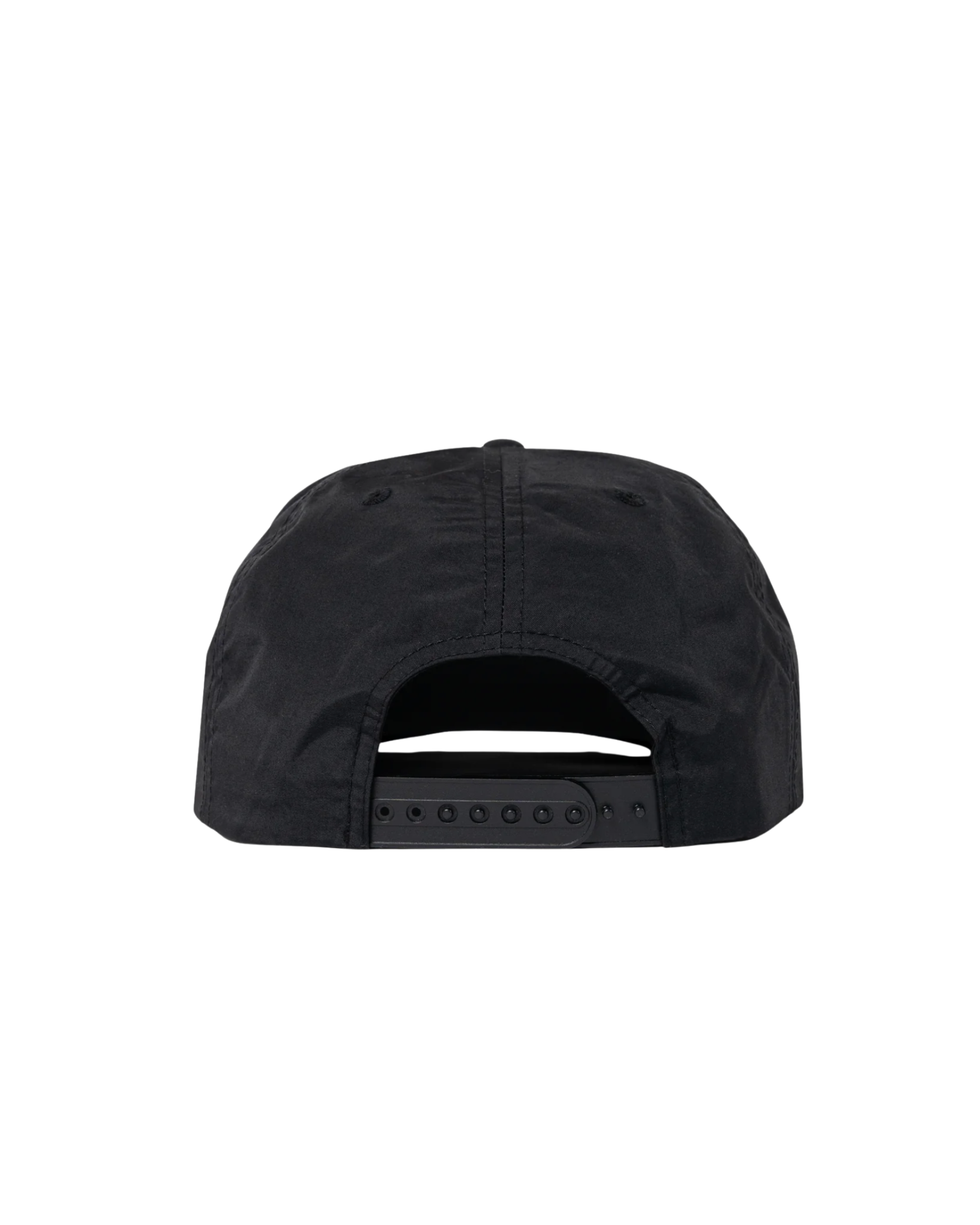 Single panel at front, quick dry fabric, plastic snapback, tonal under-peak lining
